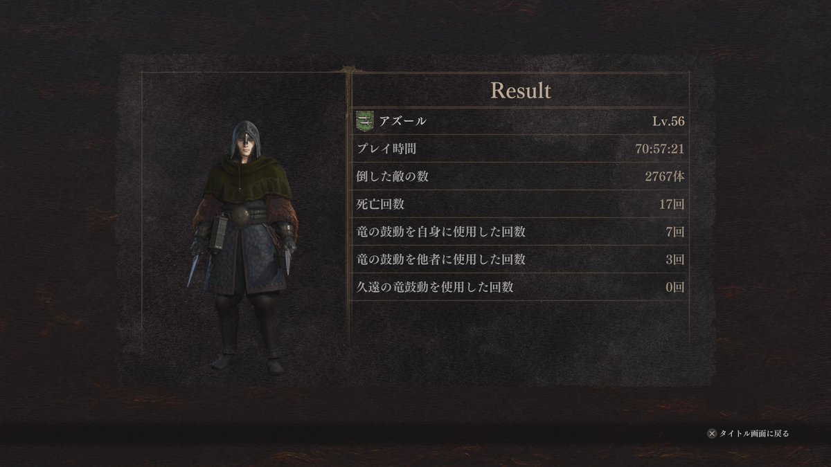 ただまぁノーマルエンドの「王の帰還だ! 凱旋だ! 即位だ! 平和が戻った!」はあまりにも「ドラゴンズドグマ」らしくなく、だからこそひたすら導き手を追ってしまいノーマルエンディングを見られなかったというのはあります。