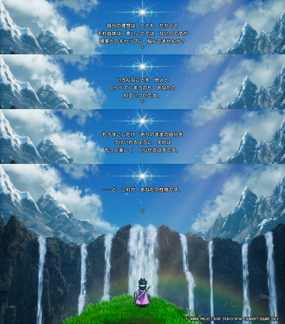 景色が綺麗だなぁと思いながら性格診断を進めていったら結果は「みえっぱり」だったのですが、内容はこれなので「カウンセリング?」と変な笑いが出ました。誇張でなくおおむねこのとおりの性格です。