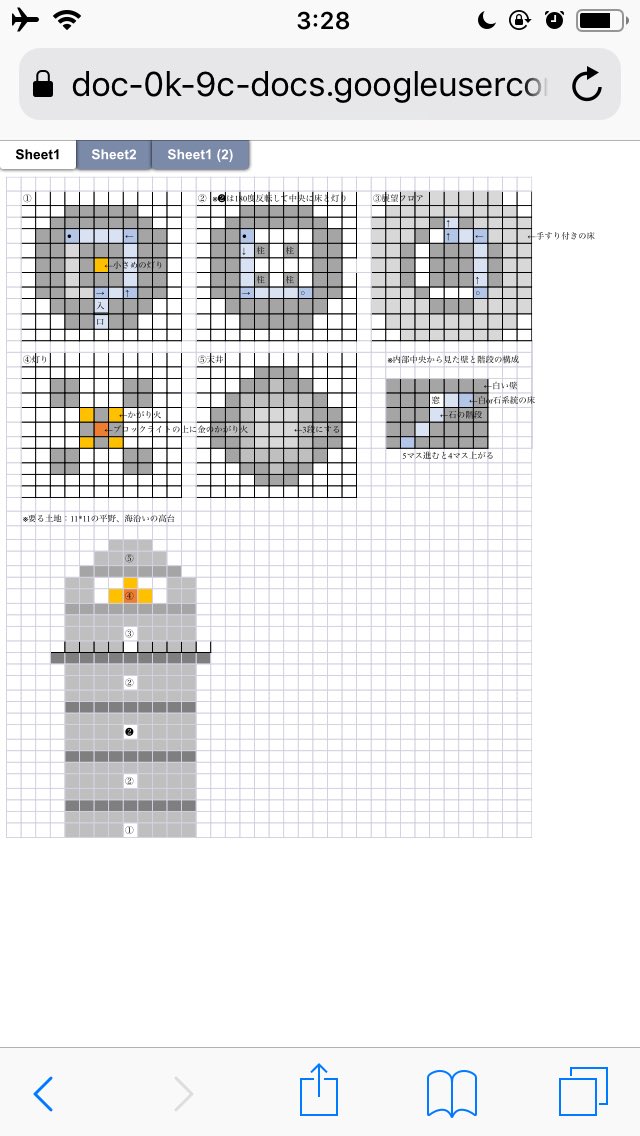 素敵なものを見るとやりたくなるので、昨日見て今日ひとりですこしだけ触りました。はこぶねをからっぽ島に持ってきてモンスターの楽園&居住区にしたいなぁと思っていたので、設計図を2枚に分けて持ってきました。