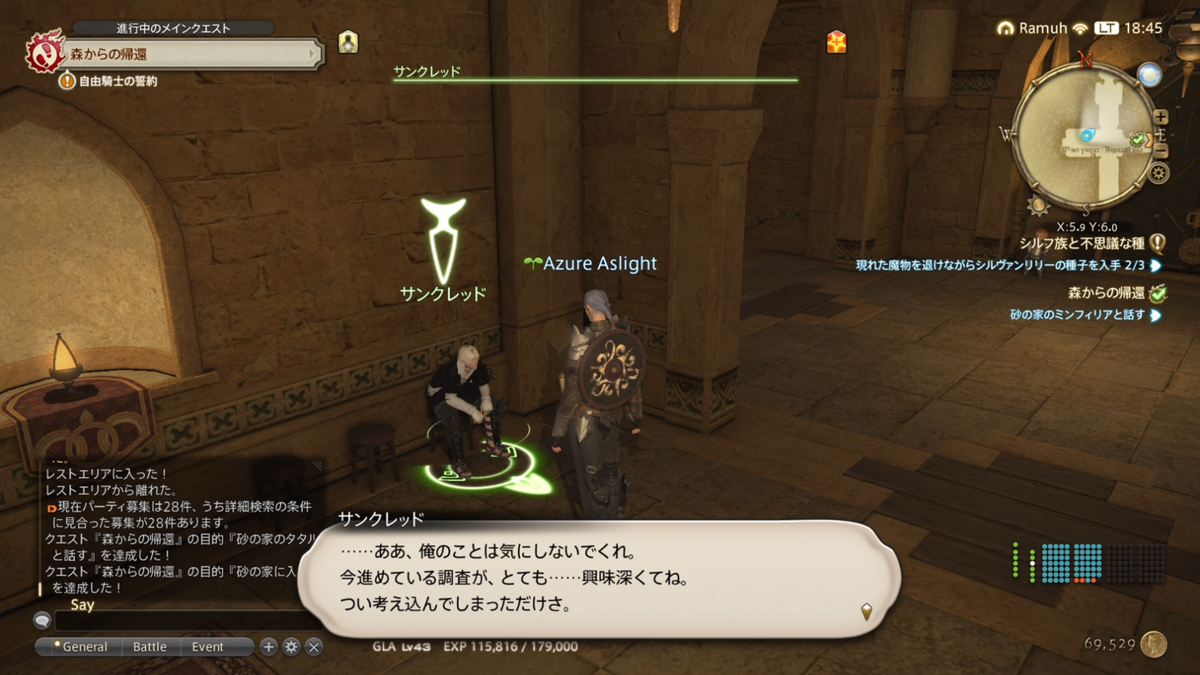 そもそもはアシエンの情報収集をしていたんでしたね。推奨サーバーボーナスなしだとリトルアラミゴはこのタイミングなのかな。