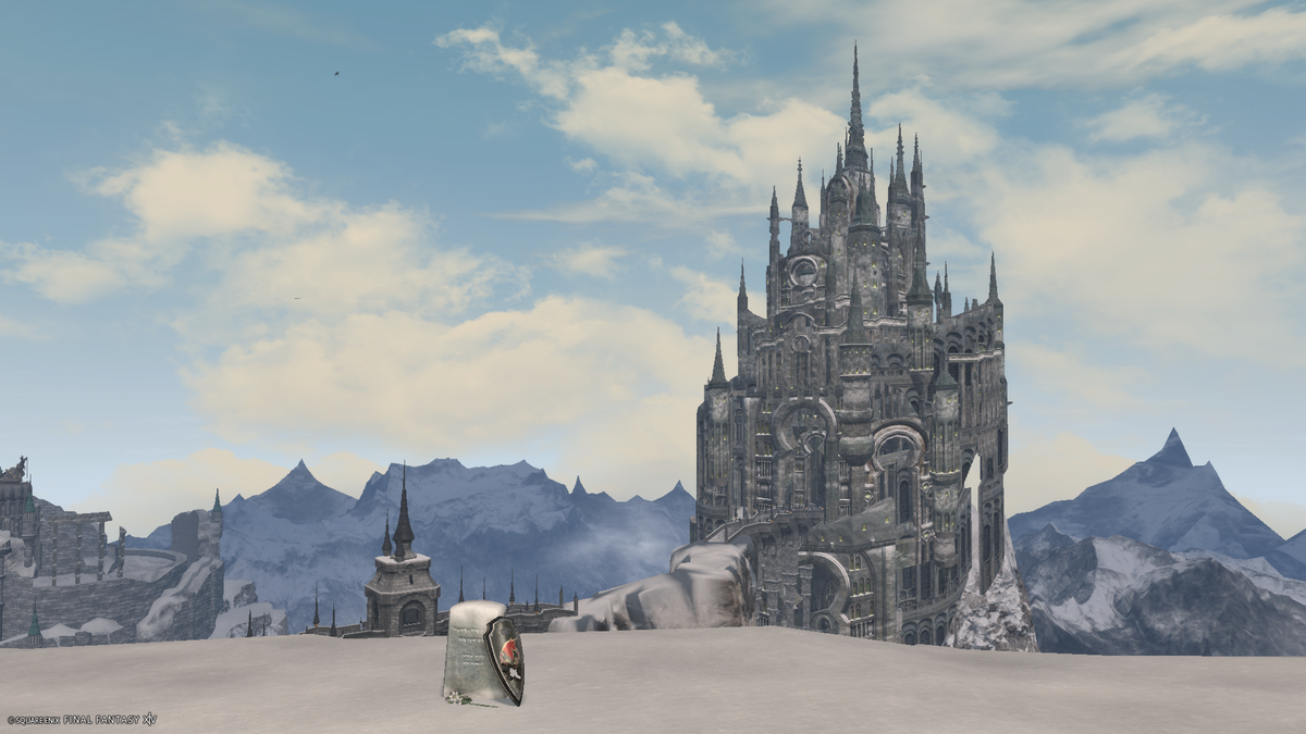 三都市は種族も雑多にいつも大勢ヒトがいたけど、イシュガルドは露骨にエレゼンばかりだしプレイヤーも少ないし、寒さもあってうら寂しい印象。
