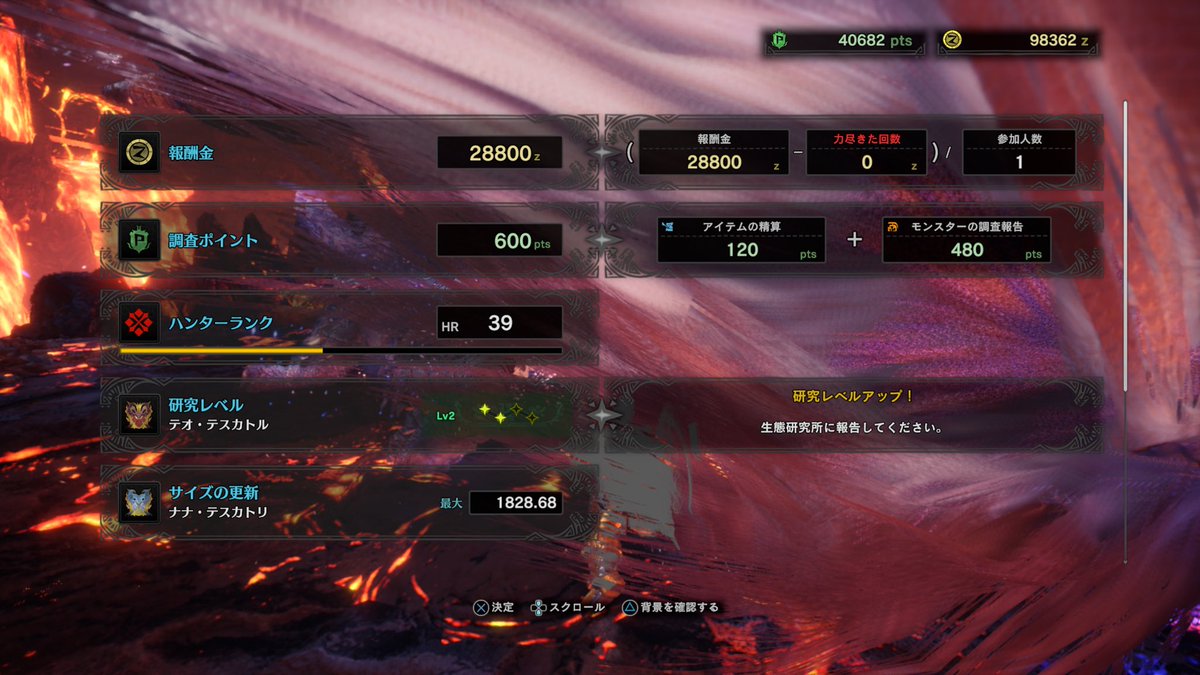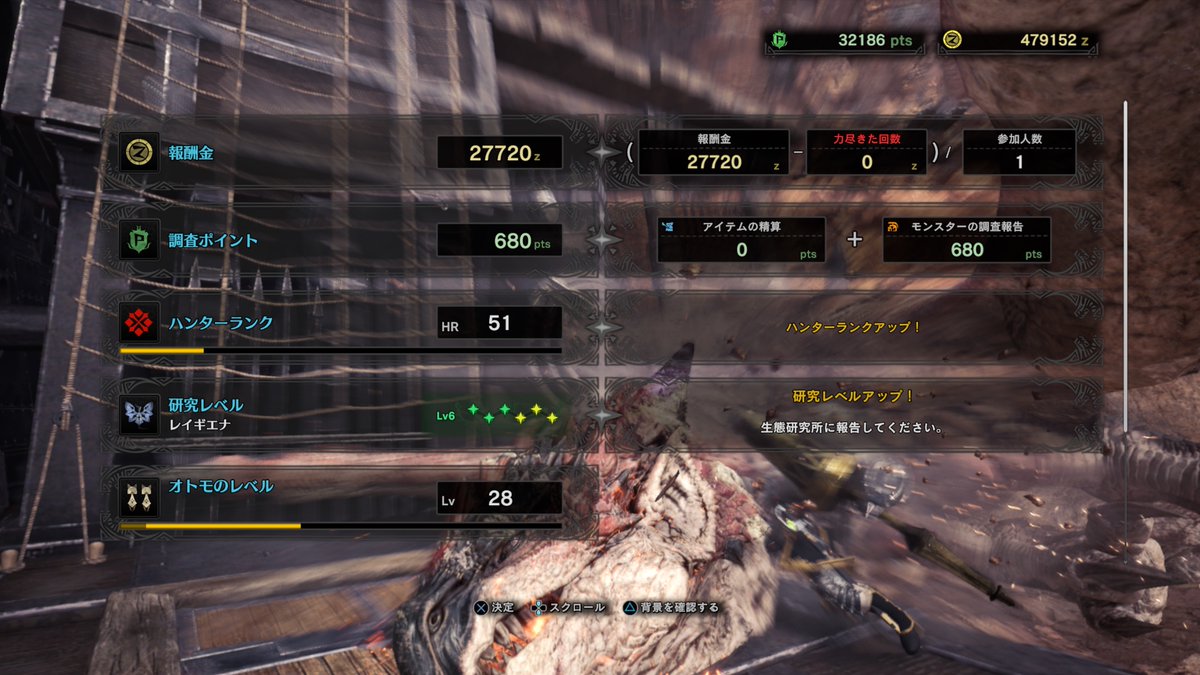 狩ったし勝ったし力の込めすぎで手が痛いですが、まさか泣くとは思いませんでした。越えられないと思っていた壁を越えた瞬間って人は泣くんですね。まぁまだ探索で狩っただけで特別任務もMRもあるのですが(むしろMRこそ目標)とりあえず、勝った……。