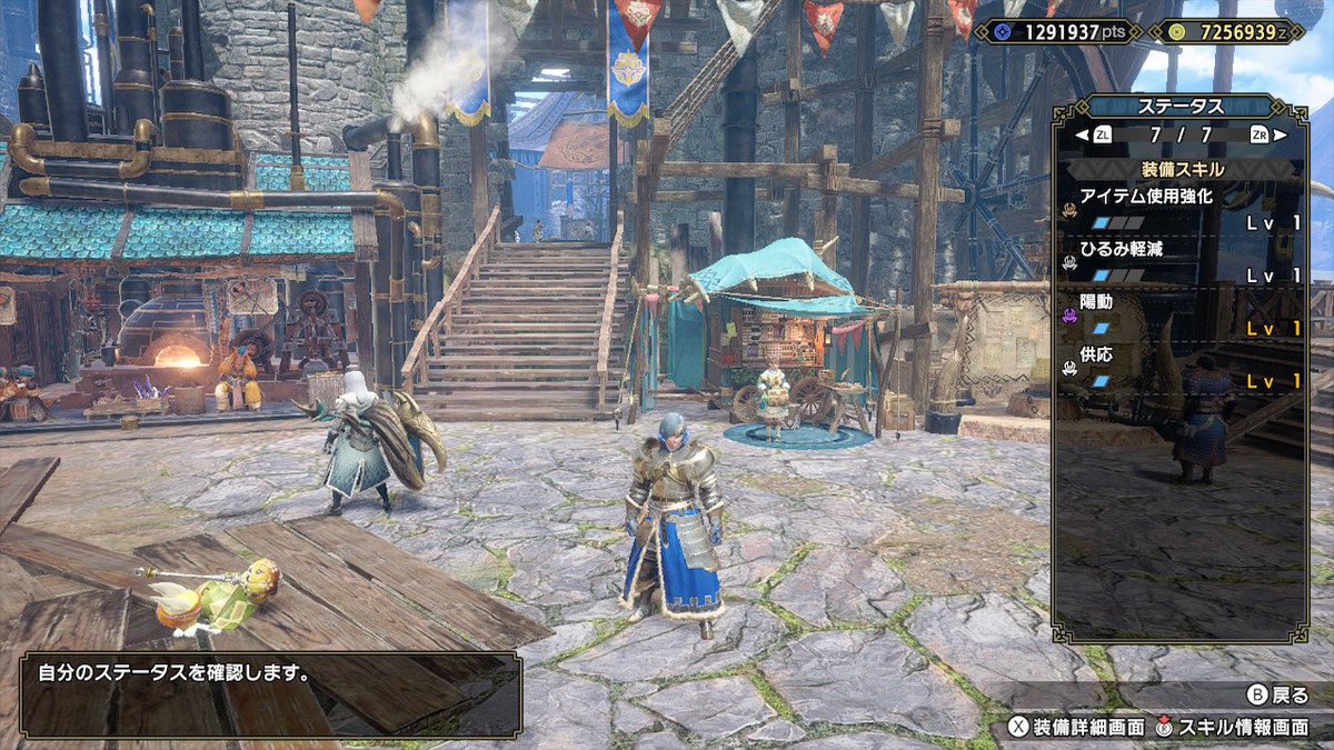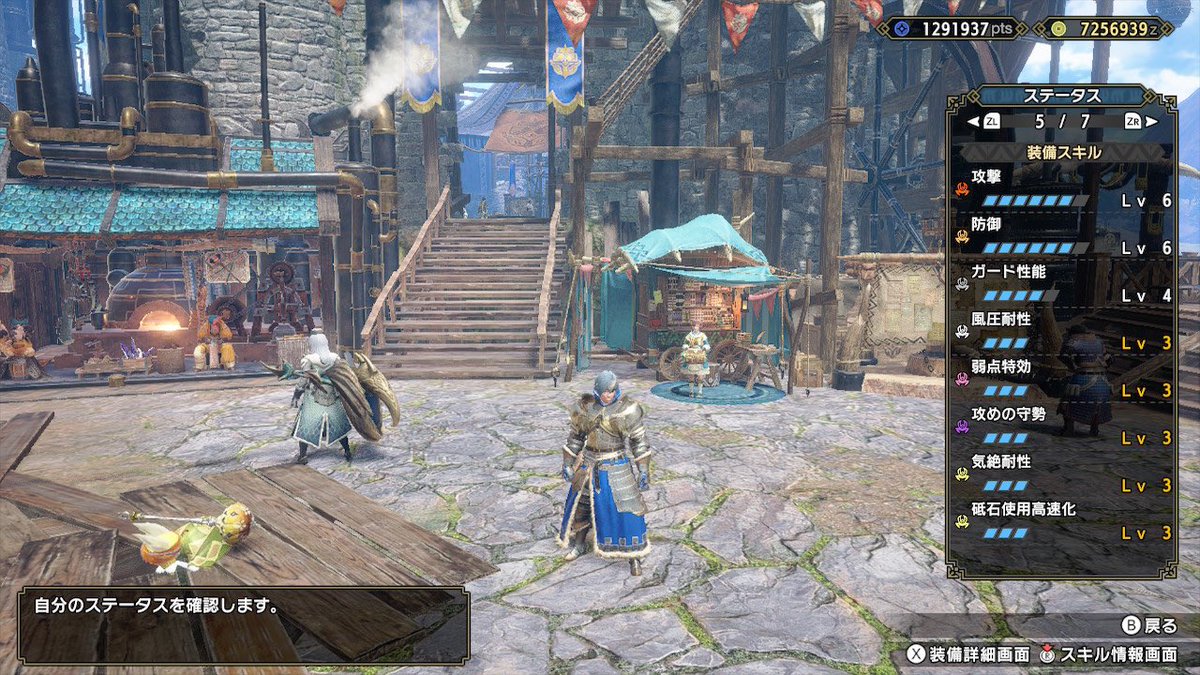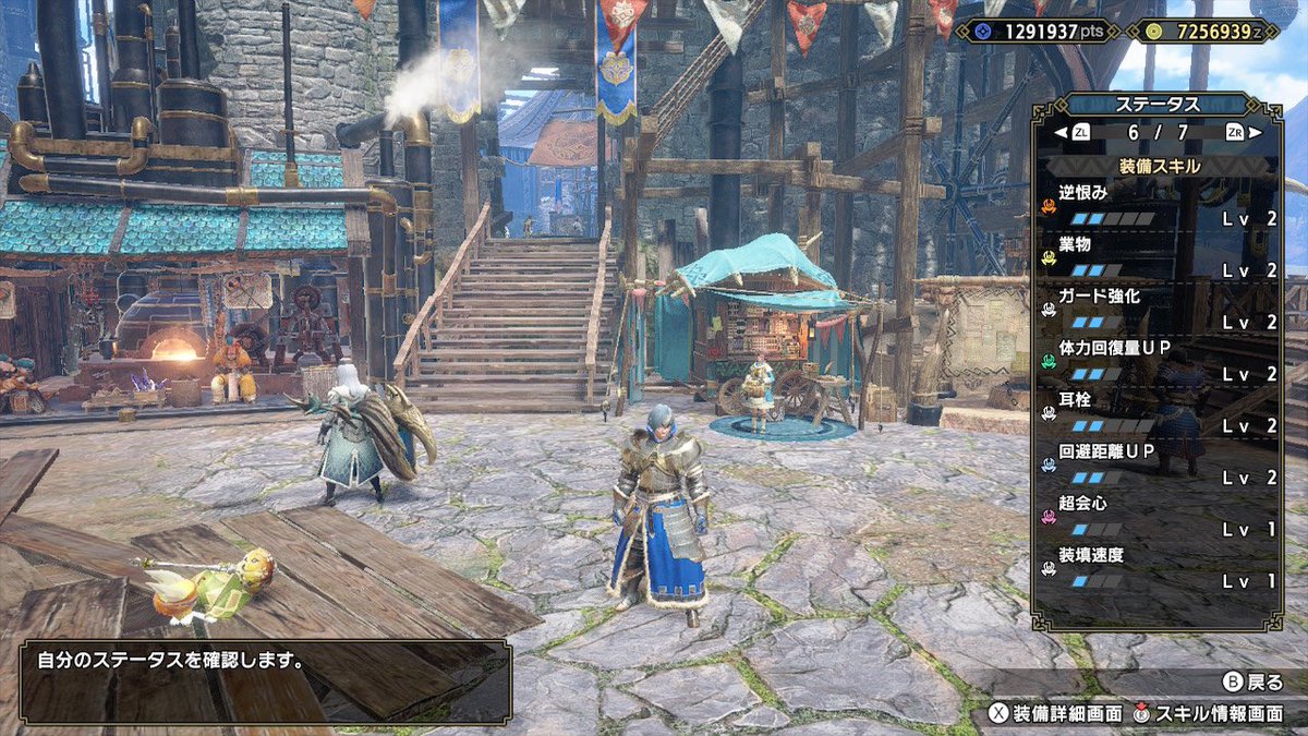 1回やってラッセルの双剣強化に全然足りなかったので再戦することになり、ハンターノートで素材排出率が部位破壊65%ということを調べ、ホーウッドがハンマーに破壊王をつけてじゃあ行くかとなったら私が回線落ちしました。リセットではなく帰還してしまったので戻れず、エルガドを散策して待ちました。