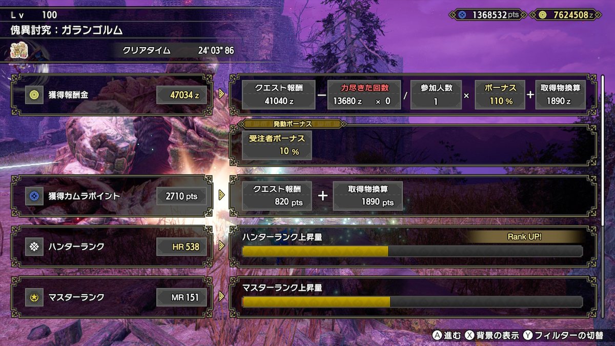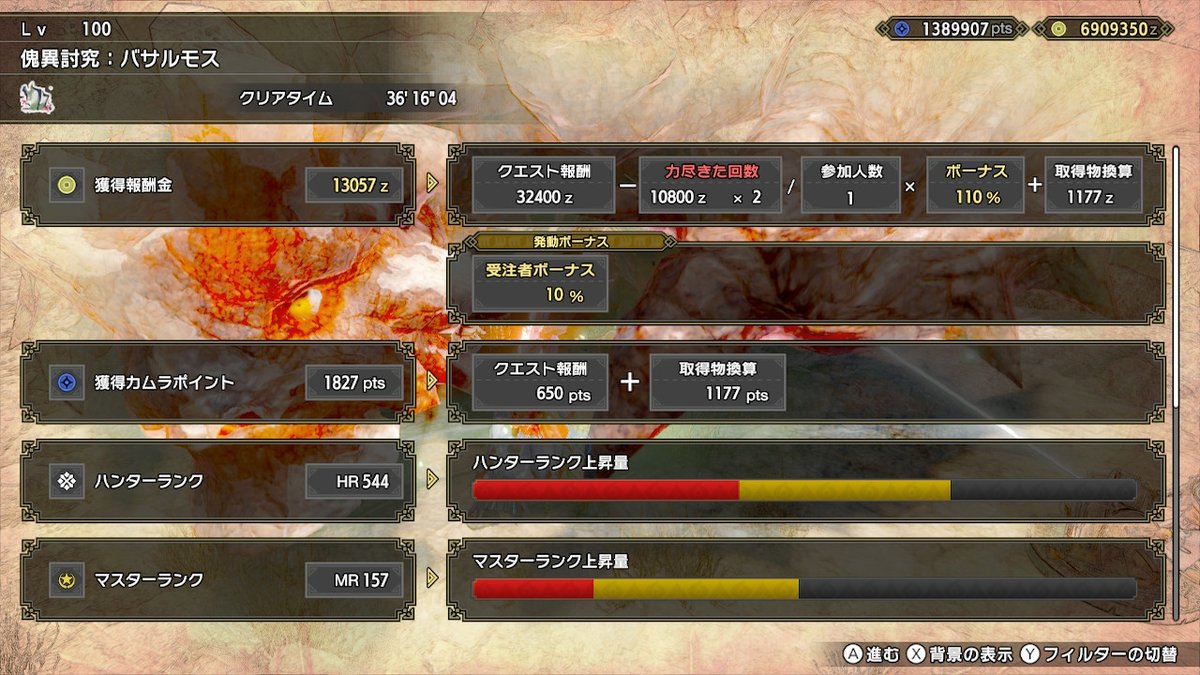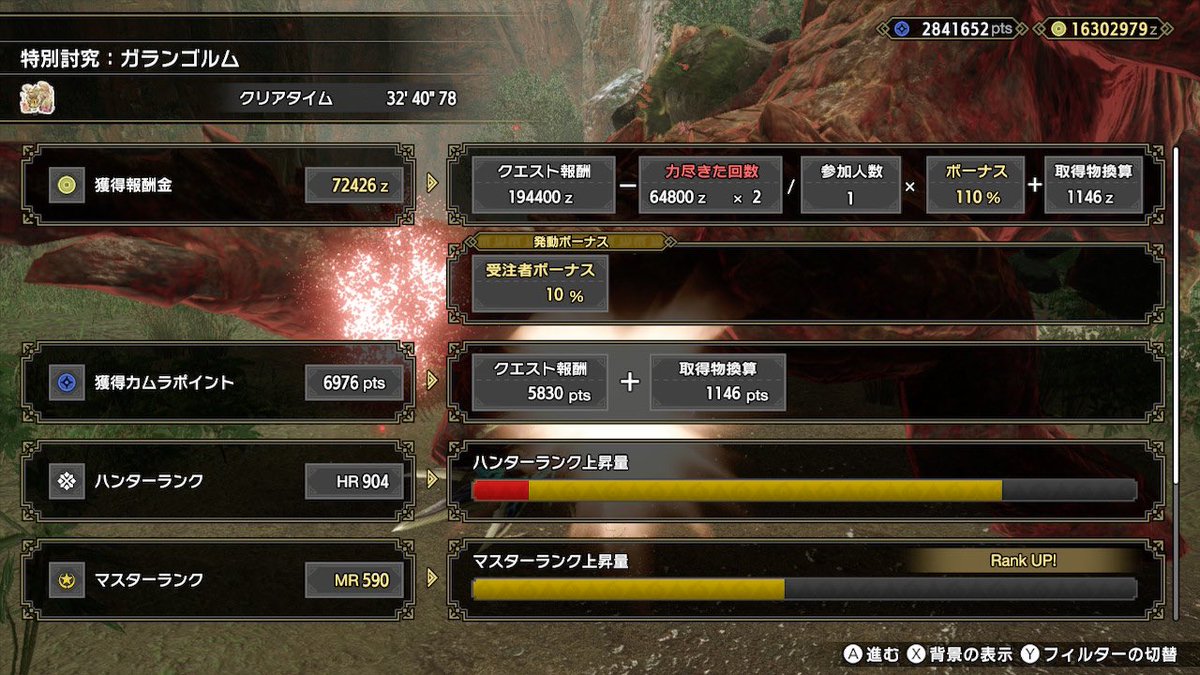 総じて、特別討究/傀異討究Lv300とは比較にならないとはいえ、MR10で受けていいクエストじゃないのでは……という苦戦具合ではありました。