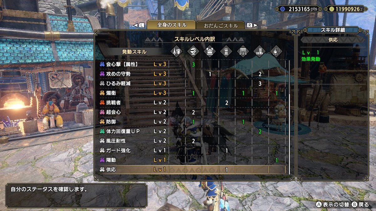 せっかくスロ4-1-1の護石なのにLv4のところに煽衛Lv2を嵌めていてもったいなかったのですよね。とりあえず満足です。