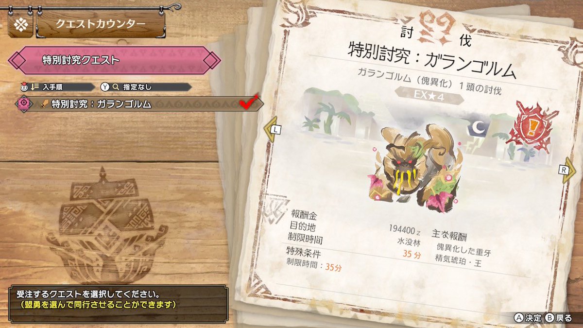 傀異討究Lv300になったので、ちょうど調査対象かつ最初にLv300になったガランゴルム水没林35分の特別討究行ってきました。計9乙のすえ辛うじて勝ちました!