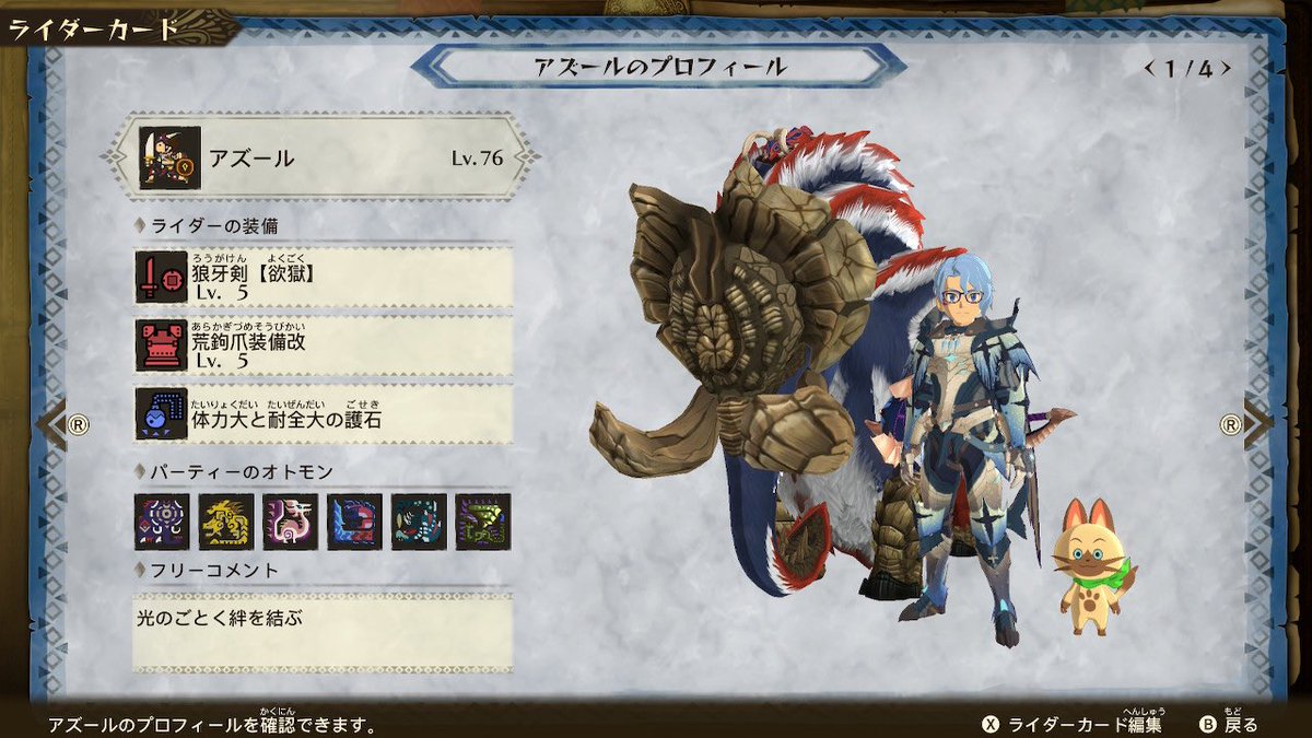 オトモン&絆技コンプリートしました! 個人的には、これでほぼ全クリと思える指標でした。