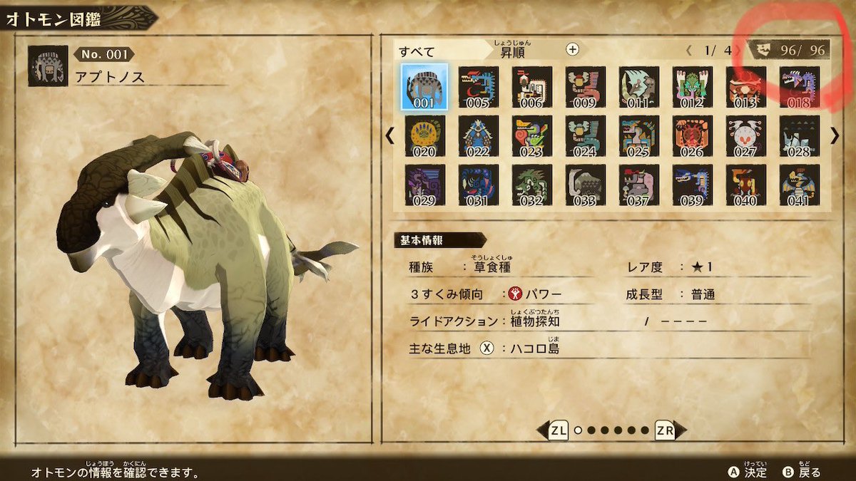 アルカラの上位レア巣から銀レウスが出て、砂漠地帯の巣でようやく鏖魔が出て、さぁこの2頭の絆技でギャラリーコンプリートだ!と思ったら称号獲得メッセージが出ず、なんで!?と自作のリストと突合していったら、クルペッコ原種が漏れていました。
